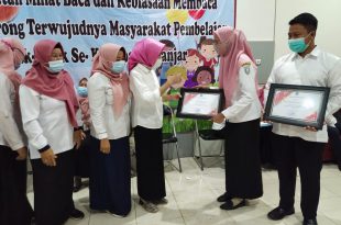 Martapura, DISPERSIP – Kepala Dinas  Perpustakaan dan Kearsipan Kabupaten Banjar drg. Yasna Khairina menganugerahkan piagam penghargaan …