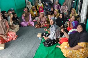 PERPUSTAKAAN KABUPATEN BANJAR ADAKAN PELATIHAN MEMBUAT BUNGA DARI KAIN DI DESA KALAMPAYAN ILIR