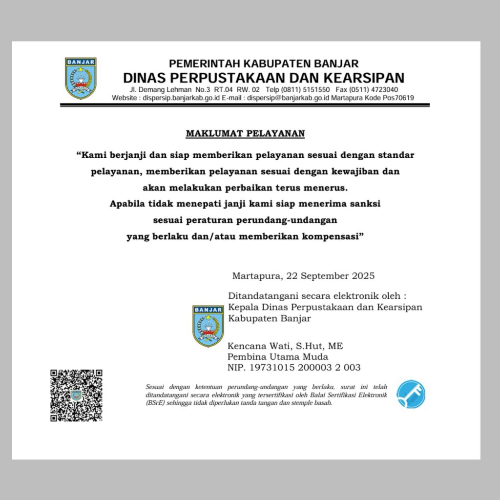 Dinas Perpustakaan dan Kearsipan Kabupaten Banjar Maju Mandiri Agamis